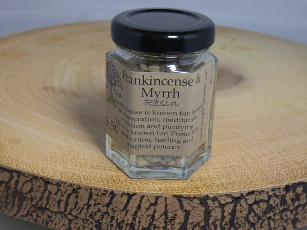 Frankincense is known for its use in consecration, meditation, protection and purifying. Myrrh is known for: Protection, purification, healing and magical potency.